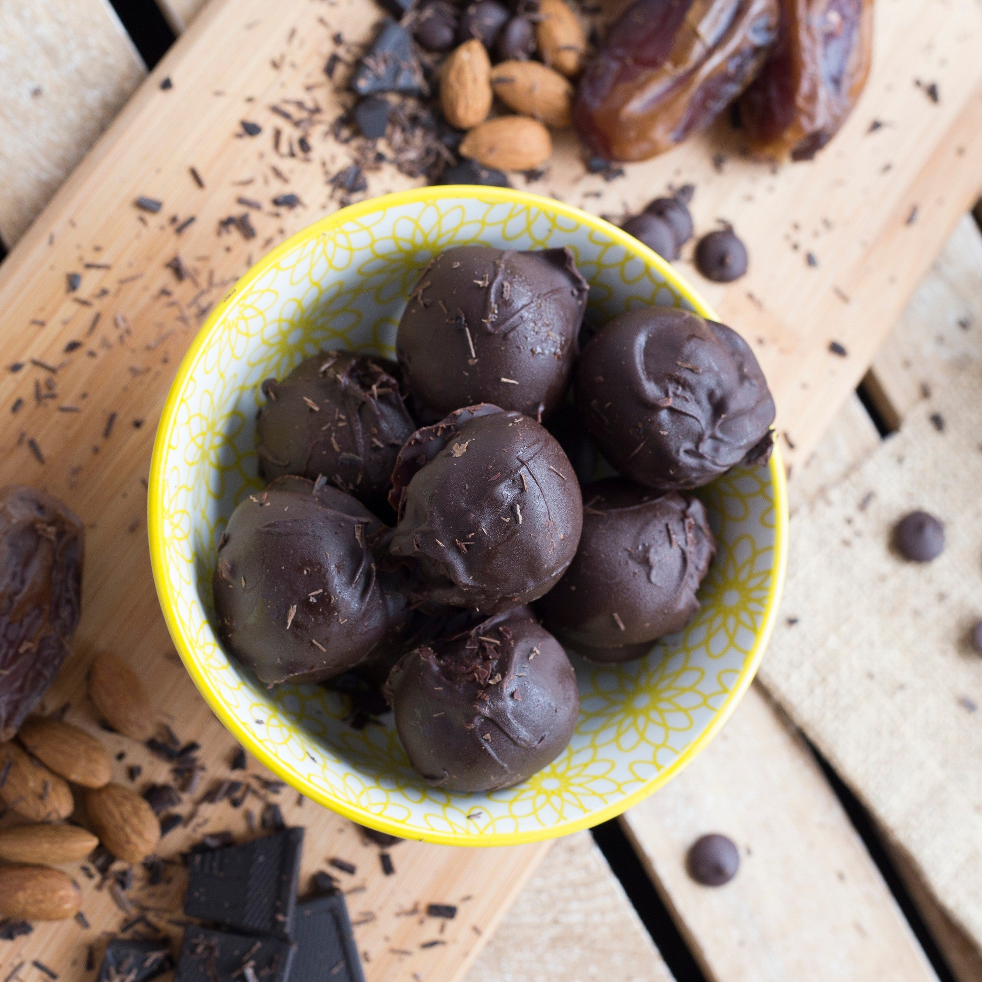 • Almond butter, dates, 70% Chocolate (Cocoa Mass, Sugar, Cocoa Butter, SOYA Lecitin, Vanilla Extract).